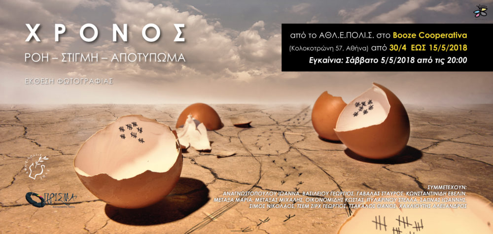 Η έκθεση φωτογραφίας “ΧΡΟΝΟΣ: ΡΟΗ – ΣΤΙΓΜΗ – ΑΠΟΤΥΠΩΜΑ”, που διοργανώνει το Αθλητικό Επιστημονικό Πολιτιστικό σωματείο ΑΘΛ.Ε.ΠΟΛΙ.Σ. μέσω του φωτογραφικού του ομίλου ΠΡΙΣΜΑ πραγματεύεται ακριβώς αυτήν την διαπίστωση. Ο Χρόνος ως κινητή εικόνα της Αιωνιότητας ή ως αριθμός της κινήσεως κατά το πριν και μετά ενυπάρχει αμετάβλητος στον συνεχώς μεταβαλλόμενο τρισδιάστατο χώρο. Ως έννοια είναι σύμφυτος με τον άνθρωπο χωρίς παράδοξα και αυταπάτες αλλά γεμάτος από σχετικότητες και ιδανικές οπτικές απεικονίσεις.