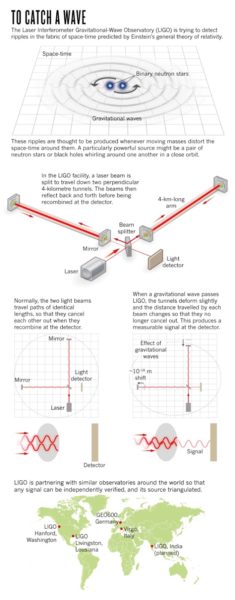 Στις 11 Φεβρουαρίου 2016, επιστήμονες από τα δύο LIGO (Laser Interferometer Gravitational wave Observatory) των ΗΠΑ, ανακοίνωσαν επίσημα ότι το σύστημα «άκουσε» τα βαρυτικά κύματα από τη συγχώνευση δύο «μαύρων τρυπών», περίπου 1.3 δισεκατομμύρια έτη φωτός μακριά (δηλαδή ένα γεγονός που συνέβει πριν από 1.3 δισεκατομμύρια έτη). Να σημειωθεί εδώ, ότι όπως προβλέπει η Γενική…