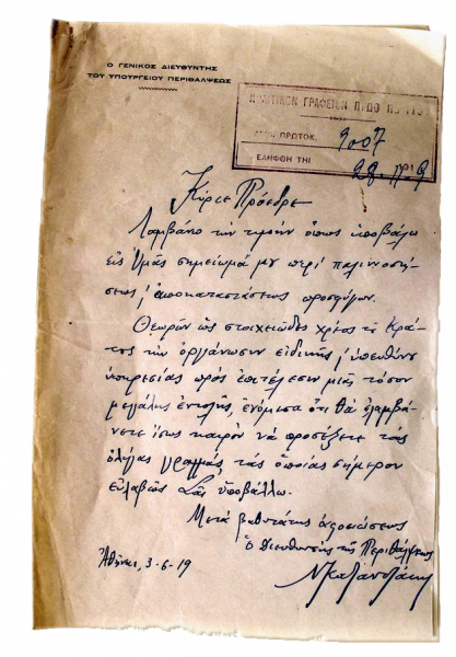 Σημείωμα του Γενικού Διευθυντή Περιθάλψεως Ν. Καζαντζάκη προς τον υπουργό Περιθάλψεως Σπ. Σίμο 2-6-1919…του Ευθύμη Λεκάκη