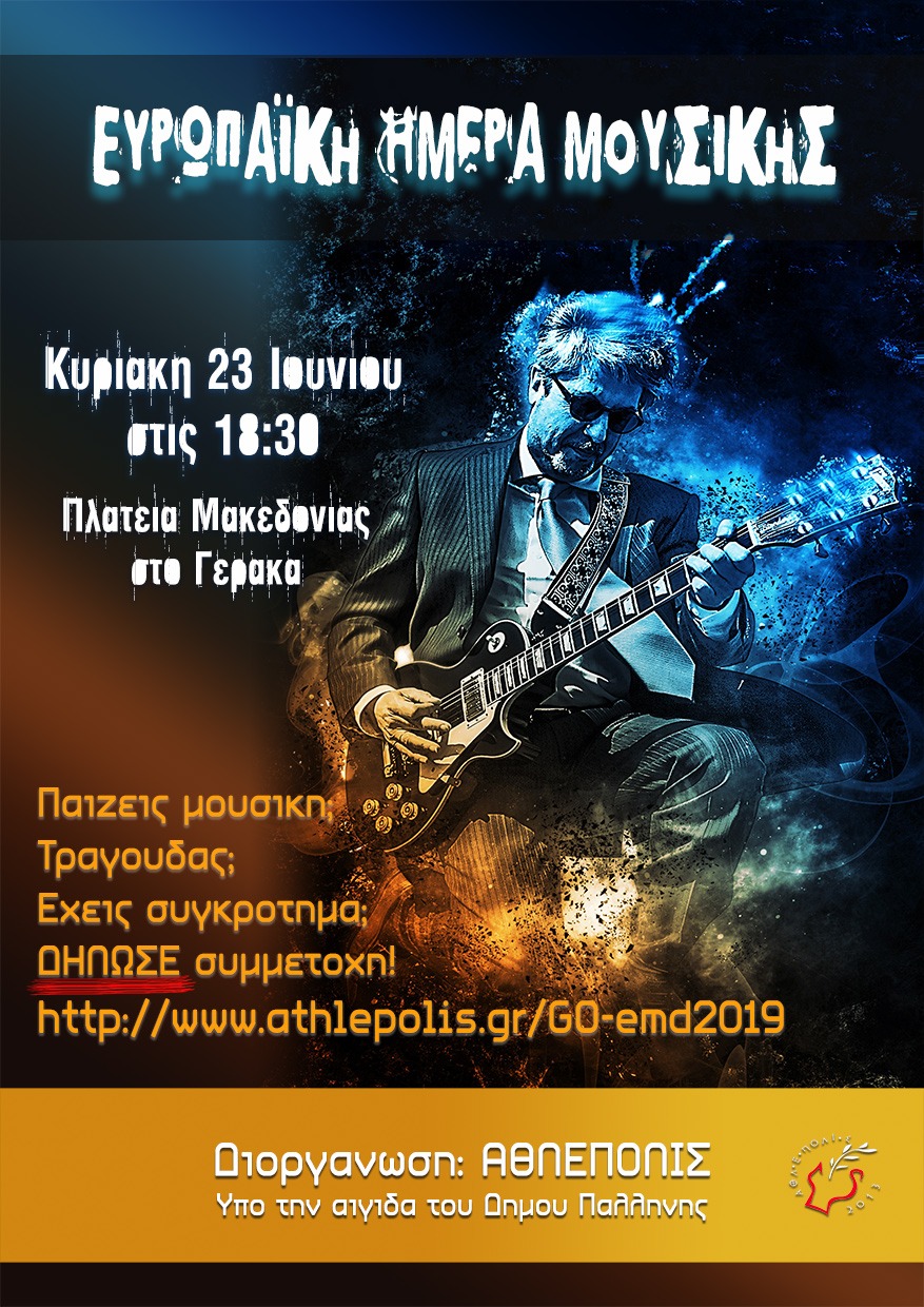 Το Αθλητικό Επιστημονικό Πολιτιστικό Σωματείο (ΑΘΛ.Ε.ΠΟΛΙ.Σ.), για δεύτερη συνεχόμενη χρονιά διοργάνωσε την Ευρωπαϊκή Ημέρα Μουσικής, υπό την αιγίδα του και την οικονομική αρωγή του Δήμου Παλλήνης. Η εκδήλωση πραγματοποιήθηκε στην πλατεία Μακεδονίας στο Γέρακα, την Κυριακή 23 Ιουνίου 2019 από…