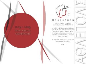 Το Σάββατο 28 Ιανουαρίου 2023 και ώρα 18.30 στην αίθουσα εκδηλώσεων