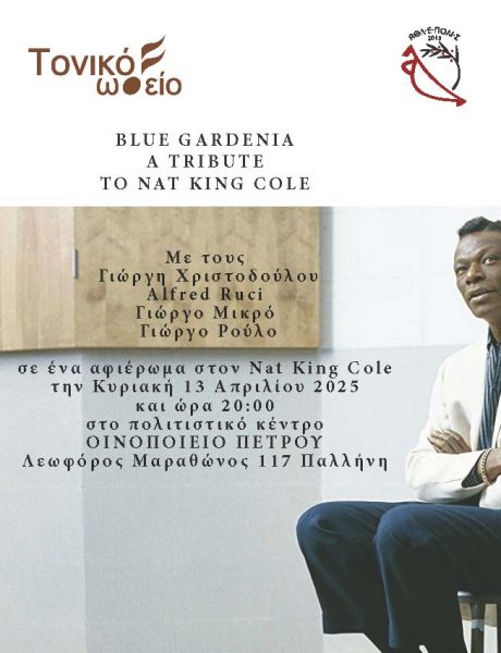 Το ΑΘΛ.Ε.ΠΟΛΙ.Σ. σε συνεργασία με το Τονικό Ωδείο Παλλήνης την Κυριακή 13 Απριλίου 2025 και ώρα 20:00 στο Πολιτιστικό Κέντρο ΟΙΝΟΠΟΙΕΙΟ ΠΕΤΡΟΥ πραγματοποίησαν ένα μοναδικό αφιέρωμα στον κορυφαίο πιανίστα και τραγουδιστή της αμερικανικής jazz, Nat King Cole.