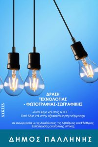 Ο Δήμος Παλλήνης σε συνεργασία με τις Διευθύνσεις Πρωτοβάθμιας και Δευτεροβάθμιας Εκπαίδευσης Ανατολικής Αττικής, τον φωτογραφικό όμιλο ΠΡΙΣΜΑ του Αθλητικού Επιστημονικού Πολιτιστικού Σωματείου ΑΘΛ.Ε.ΠΟΛΙ.Σ., το Καλλιτεχνικό Σχολείο Γέρακα διοργανώνουν δράση περιβαλλοντικής ευαισθητοποίησης μέσω της Τεχνολογίας, της Φωτογραφίας με θέμα  «Γιατί λέμε ναι στις Α.Π.Ε….. Γιατί λέμε ναι στην  ΕΞΟΙΚΟΝΟΜΗΣΗ Ενέργειας» η οποία θα υλοποιηθεί από την Κοινωφελή Επιχείρηση Αθλητισμού -Πολιτισμού και Περιβάλλοντος του Δήμου Παλλήνης.