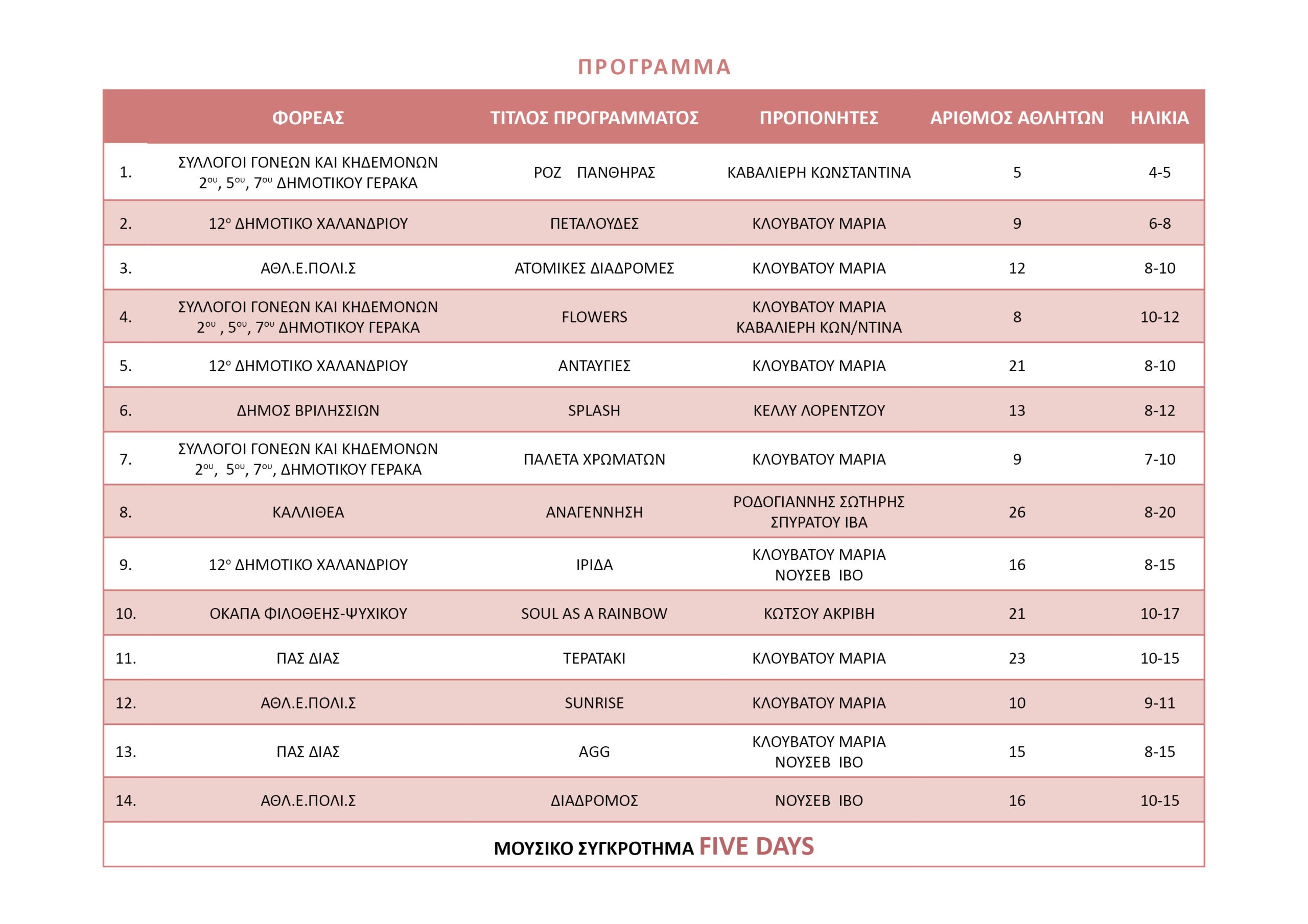 Διαδημοτικό φεστιβάλ Γενικής Γυμναστικής Δ Ι Ω Ν Η…το Πρόγραμμα