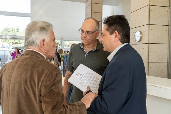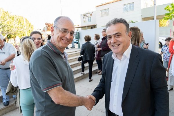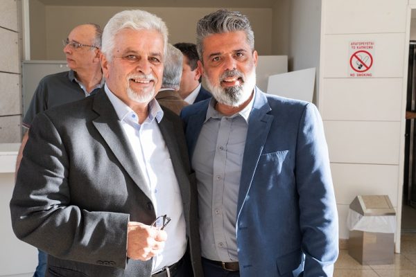 Ο πρόεδρος της Ένωσης Καλλιτεχνών και Λογοτεχνών Ηλιουπόλεως κ. Στυλιανός Μαρούλης, και ο πρόεδρος του Αθλητικού Σωματείου Κρόνος κ. Νικόλαος Φραγκούλης.