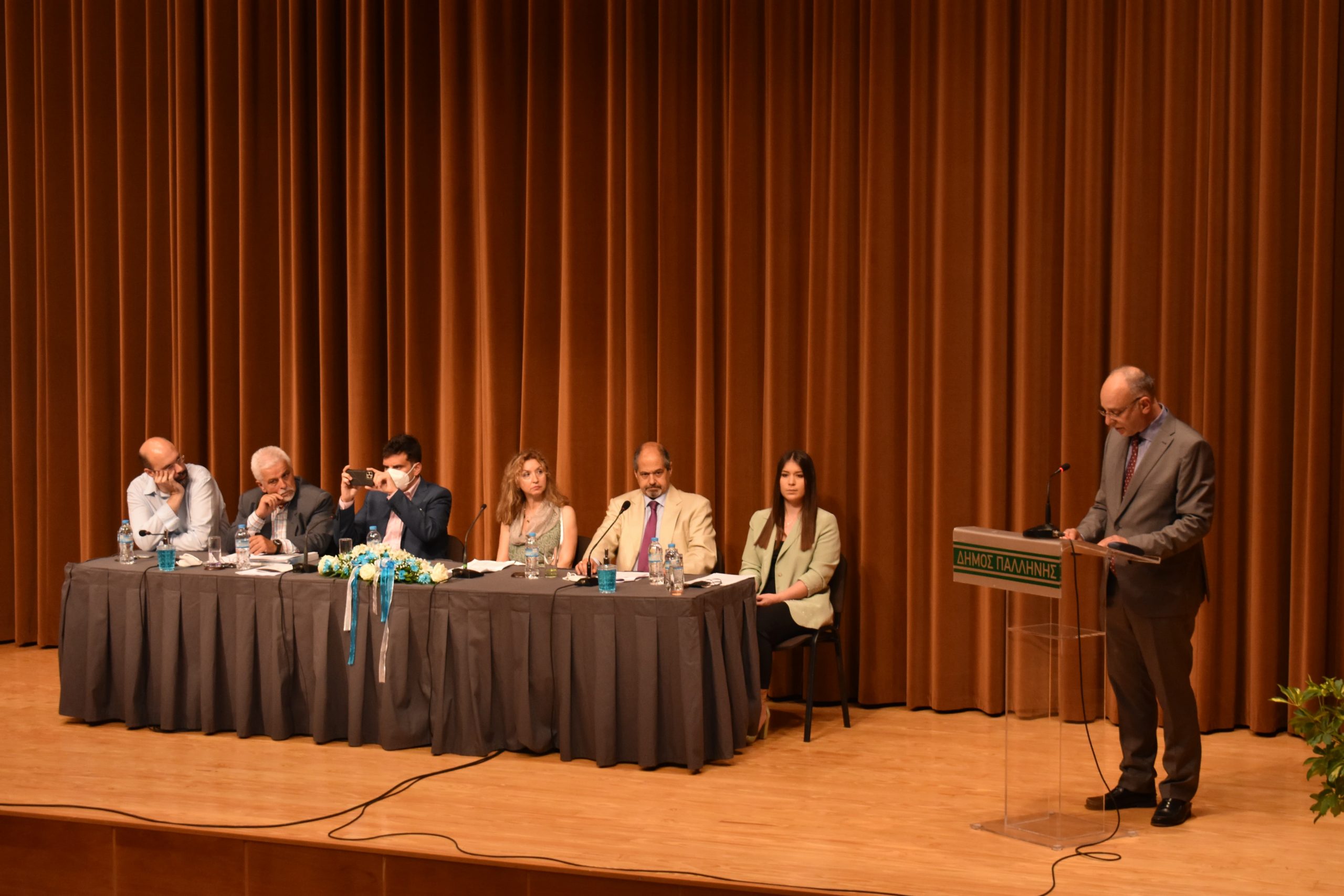 Χαιρετισμό απηύθυνε και ο Δήμαρχος Ηλιούπολης Γιώργος Χατζηδάκης, δίνοντας έμφαση στη συνεργασία μεταξύ των δύο Δήμων, αλλά και μεταξύ ενεργών πολιτών, όπως αυτή του ΑΘΛΕΠΟΛΙΣ και της Ένωσης Καλλιτεχνών Λογοτεχνών Ηλιούπολης, που συνεργάστηκαν για τον Β τόμο του επετειακού αφιερώματος.