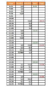 Στην συνημμένη εικόνα θα βρείτε ανά τέταρτο της ώρας σε ποιο σημείο (χιλιόμετρο της διαδρομής) βρίσκεται το τραίνο, και αν ανεβαίνει ή κατεβαίνει. Έτσι, μπορούμε να ξέρουμε πότε πρέπει να προσέχουμε και πότε είμαστε τελείως χαλαροί.